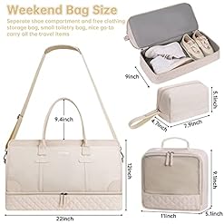 【Large Travel Bag for Women】The travel bag featuring multiple pockets and compartments for stuff organization, roomy space can fit in 3-5 days of travel essentials, easily fit into your clothes, toiletries, shoes, laptop, ipad and other items. In the back of the duffle bag there is a pocket for easy access your smart phone, IDs or passport.