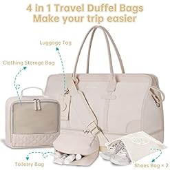 ETRONIK Weekender Overnight Bag for Women, Large Travel Duffle Bag with Shoe Compartment & Wet Pocket, Carry On Tote Bag Gym Duffel Bag with Toiletry Bag, Bag for Hospital 4 Pcs Set, Beige