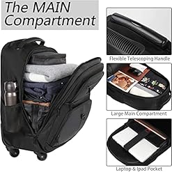 ▶COMFORTABLE DESIGN: Padded and padded adjustable shoulder straps of this large rolling backpack provide you the best carrying experience ever. The amazing gift for your loved. Premium Aluminum Double Telescoping Handle allows you to quickly maneuver in tight spaces and lasts stronger than other telescoping handles on the market. Upgraded 4 spinner wheels, high-density material, more wear resistant and durable for use