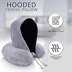✅ PREMIUM MEMORY FOAM PILLOW : Enjoy high comfort, luxury travel neck pillow is made of high quality memory foam. Hoodie travel neck pillow will give you maximum comfort so you can rest on your long flights.
