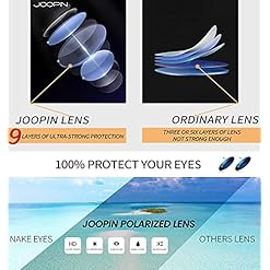 ✔️POLARIZED LENS – Joopin polarized sun glasses reduce glare reflected off of roads, bodies of water, snow, and other horizontal surfaces. Restore true color, eliminate reflected light and scattered light and protect eyes perfectly