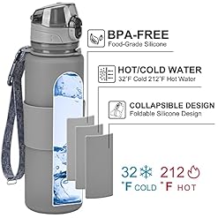 MORE VERSATILE – This water bottle is collapsible; dishwasher safe; hot or cold drinks available; freezable; wide mouth design with spout; 100% portable with nice carry bag, this is the most versatile fold up water bottle you ever need for traveling, gym running sports, outdoor adventures.