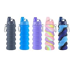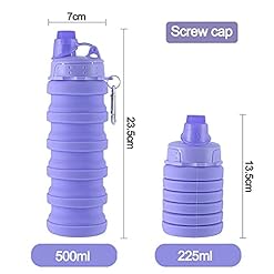 Collapsible Water Bottle Travel Water Bottle Portable Hiking Water Bottle with Leak proof Twist Cap 500ML Reusable BPA Free Silicone Water Bottles (Style1, Purple)