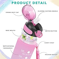 【Motivational Quote & Time Marker】32 oz water bottle with unique inspiration quote and time marker, reminding you to stay hydrated. The capacity marker helps you tracking daily water intake. A silicone straw makes you enjoy spill-proof sipping without effort. A necessary have for people of different occupations such as athletes and white-collar workers.