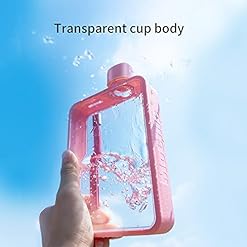 MoChic Flat Water Bottle Travel Flask Portable Travel Mug BPA Free A5 Water Bottle for Sports Camping Gym Fitness Outdoor 13oz Fit in Any Bag (Pink)…